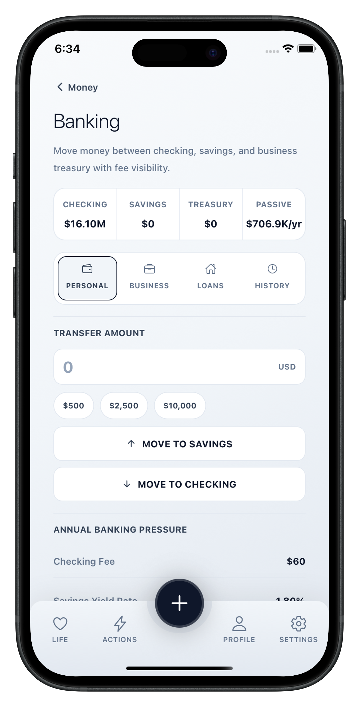 Track every dollar across checking, savings, and business treasury. See your passive income streams, mortgage debt, and total net worth at a glance. Transfer funds, manage loans, and watch your wealth compound over time. Your financial dashboard for building generational wealth.